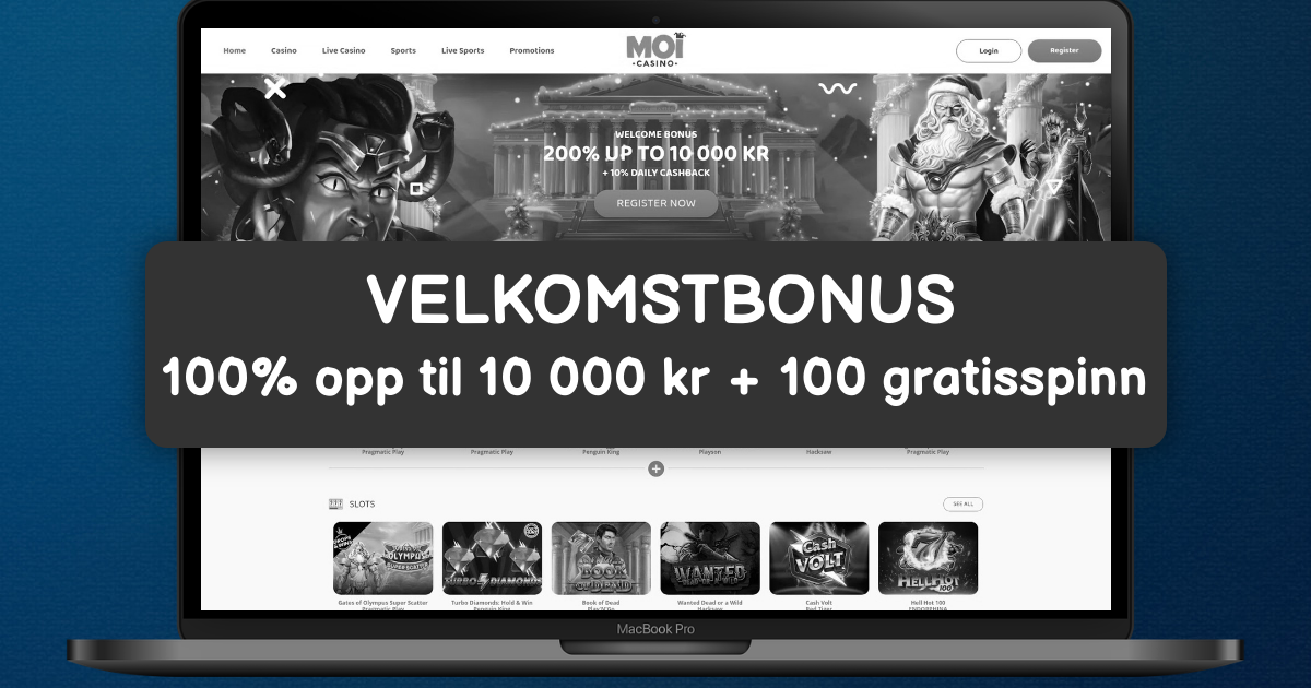 Nye spillere hos MOI Casino blir ønsket velkommen med en eksepsjonell bonus på 200% opptil 10 000 kroner på sitt første innskudd. Dette betyr at spillere som setter inn 5 000 kr får totalt 15 000 kr å spille for, noe som gir en fantastisk start på casino-eventyret.
